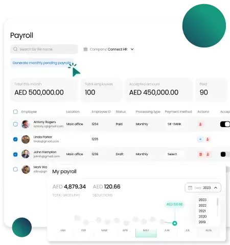 Effortless management, multiple payrolls, real-time tracking, and rich reporting. Your payroll, perfected.