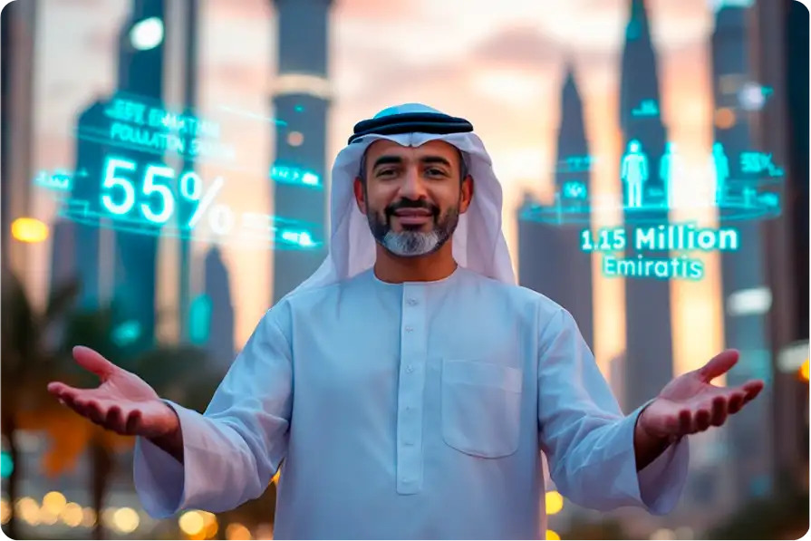 Only 1.15 million Emiratis in a population of 11.28 million—and nearly 70% of them work in the public sector, drawn by stability, benefits, and long-term security